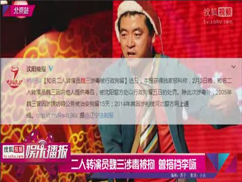 据《辽宁法制报》报道:2月3日晚,知名二人转演员魏三因向他人提供毒品,被沈阳警方行政拘留五日。爆料人介绍,事发2月3日晚,沈阳市公安局皇姑分局新乐派出所在处理一起涉毒案时,吸毒人员的一句“毒品是魏三给的,他也吸毒”引起了警方的注意。警方在沈阳一会所内对魏三进行了口头传唤。在派出所内,警方对其进行毒品检测,魏三的尿检呈阴性,说明魏三本人并未在短期内吸毒。但魏三本人对“为他人提供毒品”一事供认不讳。沈阳警方认定魏三的违法行为属于“情节较轻”,遂对魏三处以行政拘留五日的处罚。
